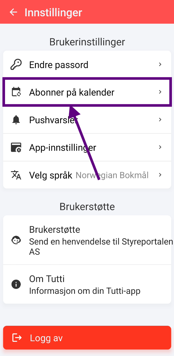 Når man bruker medlemsappen Tutti kan man velge å abonnere på aktivitetene som vises i Tutti til sin egen kalender.